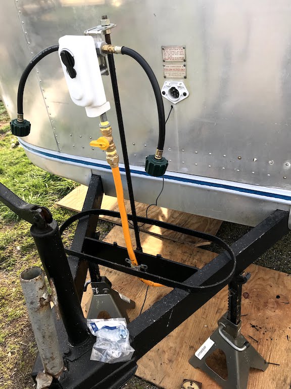 We are using propane for two things in our airstream: the hot water heater and the range. This made it relatively simple to run one line down the left (driver’s side). Eventually, we would love to run a line over for a grill hook up on the passenger’s side under a new awning.